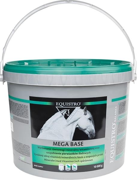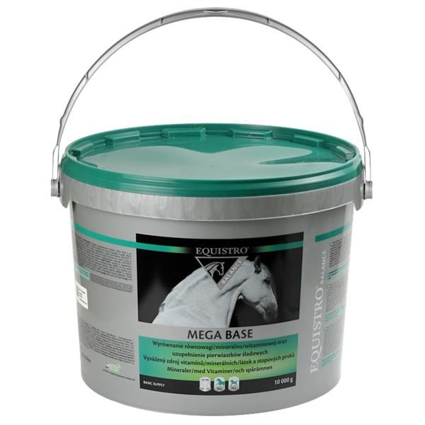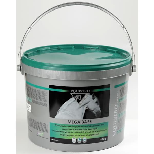 EQUISTRO Mega Base obsahuje Ca : P v optimálním poměru 5 : 1 a vyrovnává tak možný nedostatek vápníku a fosforu v krmné dávce. Složení: Uhličitan vápenatý 40 %, fosforečnan vápenatý 20 %, dextróza 20 %, chlorid sodný 10 %, oxid hořečnatý 1 %. Deklarované jakostní znaky: Popel 76,8 %, vápník (Ca) 20 %, sodík (Na) 4,5 %, fosfor (P) 4 %, popel nerozpustný v HCl 3,7 %, vlhkost 2,5 %, tuk 0,9 %, hořčík (Mg) 0,6 %, vláknina 0,3 %, dusíkaté látky 0,3 %. Doplňkové látky (v 1 kg): Vitamin A 1.200 000 m.j., vitamin D3 125.000 m.j., vitamin E (tokoferolacetát) 5.000 mg, zinek (Zn – jako oxid zinečnatý) 2.900 mg, DL-methionin 2.500 mg, mangan (Mn – jako síran manganatý) 1 180 mg, železo (Fe – jako síran železnatý) 1 170 mg, měď (Cu – jako síran měďnatý) 500 mg.