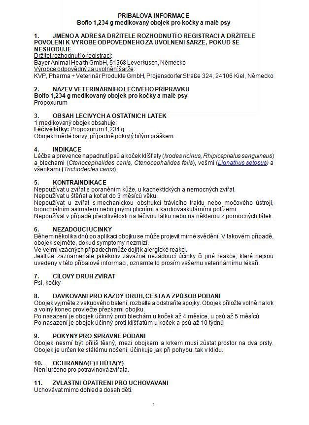 Obojek je akaracid a insekticid určený k vnějšímu použití. Zamezte kontaktu obojku s ústní dutinou zvířete. Po manipulaci s obojkem si důkladně umyjte ruce. Lidé se známou přecitlivělostí na propoxur by se měli vyhnout kontaktu s obojkem. Zvířata s obojkem by neměla přijít do kontaktu s batolaty a malými dětmi.