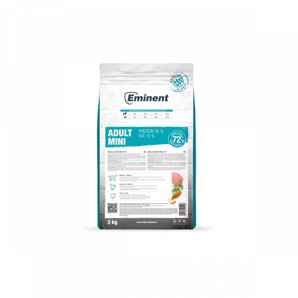 Speciální receptura je vytvořena s ohledem na specifické požadavky včetně vyšší aktivity malých plemen psů. Lehce stravitelné bílkoviny 26 % (kuřecí maso) a ideální hladina tuků 15 % (zejména drůbeží tuk a kokosový olej) s optimálním poměrem omega 6 a 3 mastných kyselin (7,5) zajišťují vynikající kondici a vitalitu.