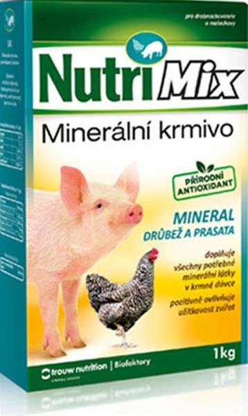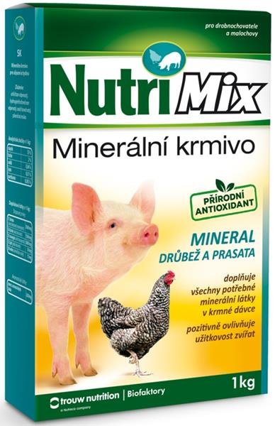 NUTRI MIX MINERAL je určen pro drobnochovatele a malochovy. Přidává se do krmné dávky drůbeže a prasat k pravidelnému doplnění a vyvážení tradiční krmné dávky. Obsahuje biologicky účinné látky - makro a mikroprvky. Tato směs umožňuje chovatelům dokompletovat neplnohodnotnou krmnou dávku na potřebnou úroveň a udržovat tak dobrý zdravotní stav zvířat, případně řešit nedostatek minerálních látek při poruchách minerálního metabolismu (rachitidě, osteomalácii apod.). Zajišťuje úspěšný chov, odchov a výkrm všech kategorií drůbeže a prasat