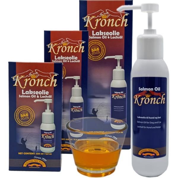 Kronch lososový olej je 100% čistý přírodní produkt určen pro všechny typy psů.
