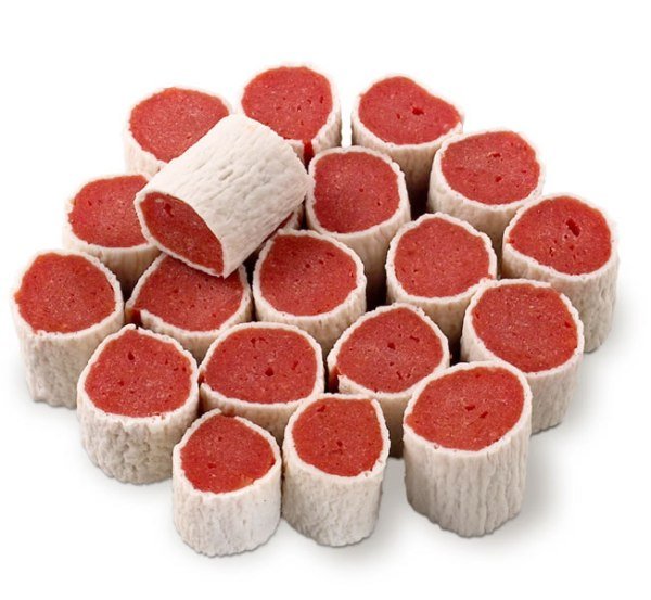 Nejlepší odměnou i pochoutkou pro každého psa je kousek kvalitního masa. Je to přirozená a hlavní složka jejich potravy. Wanpy vyrábí pochoutky právě z prvotřídního čistého masa. To je postupně sušeno a díky tomu si zachovává veškeré živiny, vitaminy a minerály. Wanpy Chicken Pollock Sushi jsou středně měkké pochoutky z kuřecího a tresčího masa.