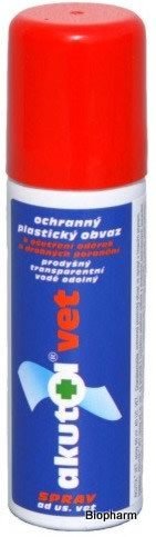 Je vhodný zejména u povrchových poranění končetin. Po nanesení do 3 minut zasychá a vytváří voděodolnou ochrannou vrstvu. Plastická ochrana zabraňuje přístupu cizorodých látek ze zevního prostředí, přitom ale zabraňuje přirozené perspiraci pokožky. Rána zůstává uzavřená před nepříznivými vlivy, proces hojení pod plastickou vrstvou obvazu však probíhá. Obvaz je ve vodě nerozpustný, k jeho odstranění dojde samovolně po 3 - 4 dnech postupně probíhajícím zeslabemím plastické vrstvy otěrem. Vyžaduje-li to charakter hojené rány, je možné postřik prostředkem Akutol Vet Spray po třech dnech opakovat.