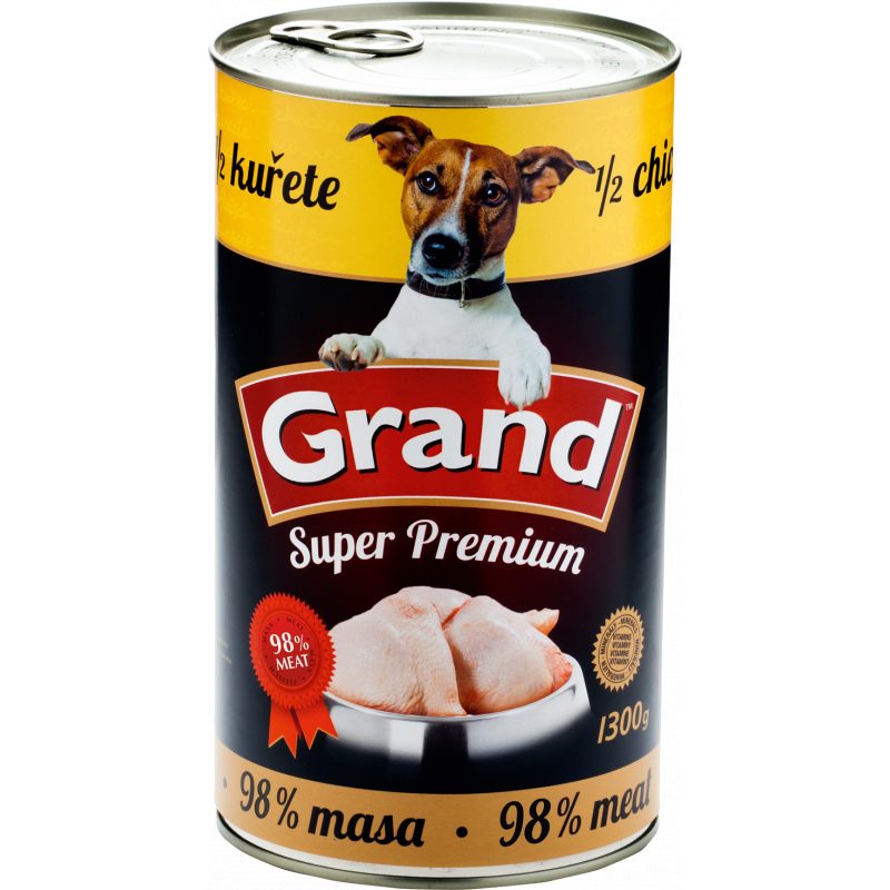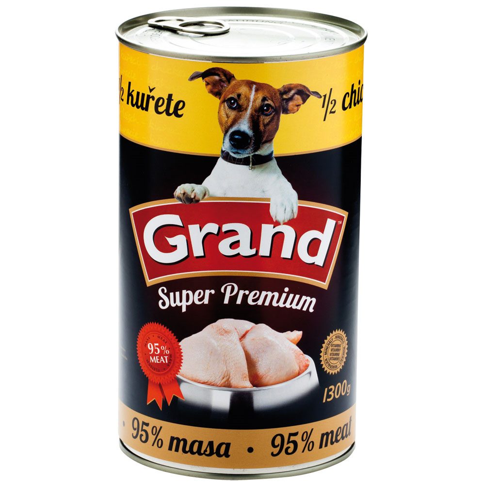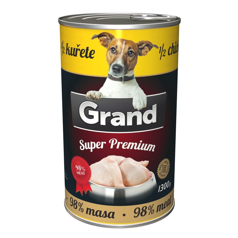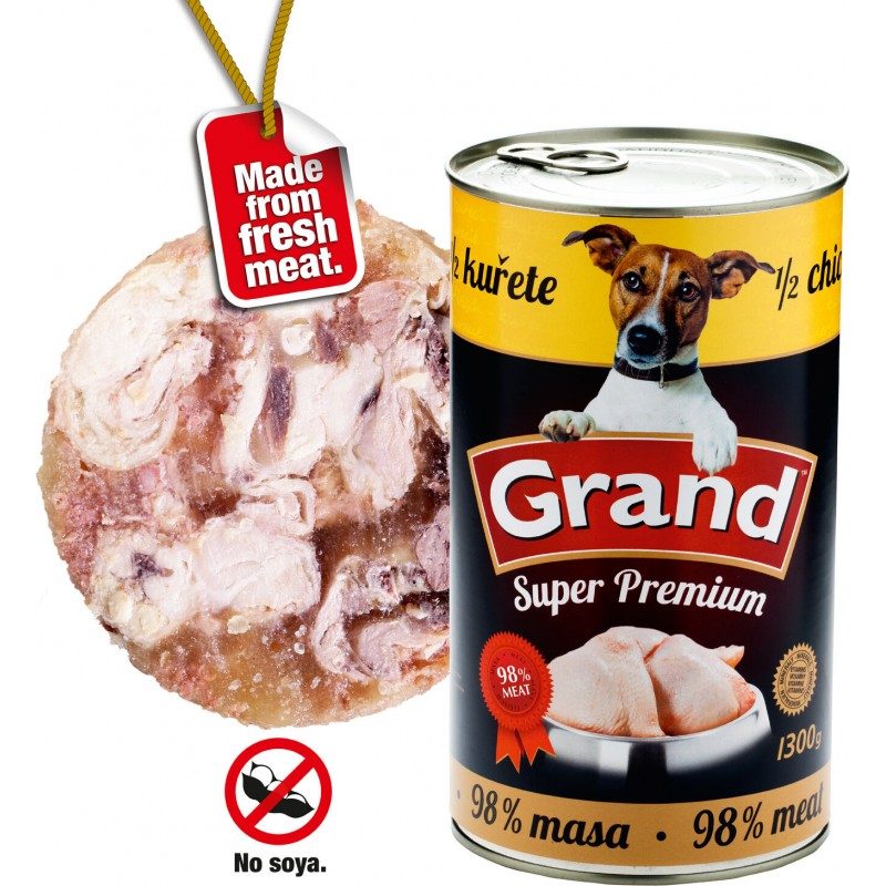 Konzerva Grand premium 1/2 celého kuřete je kompletní krmivo pro psy. Z čerstvého masa bez chemických přísad.