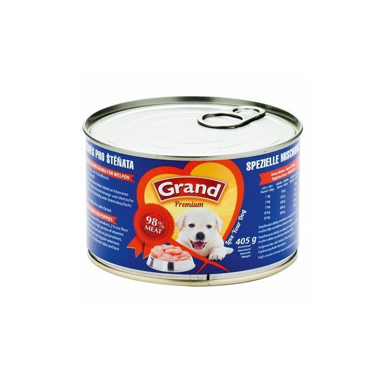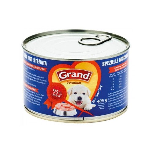 Při výrobě se používá výhradně čerstvé maso- konzervy Grand obsahují pouze maso a max. 2% rýžové mouky pro zahuštění. Receptura vyvinuta pod veterinárním dohledem je zcela bez obsahu sóji, chemických dochucovadel, konzervatnů a barviv. Obsah čistého masa je 80%. Tuzemská značka Grand má základ výhradně v čerstvém mase. Nejsou použity chemické příměsy, konzervační látky ani jiné umělé přísady. Do konzerv je přidávána rýžová mouka v maximální míře 0-2 % z důvodu zahuštění masové složky, nikoliv kvůli nastavení masové složky. Konzervy Grand jsou tedy opravdu masové.
