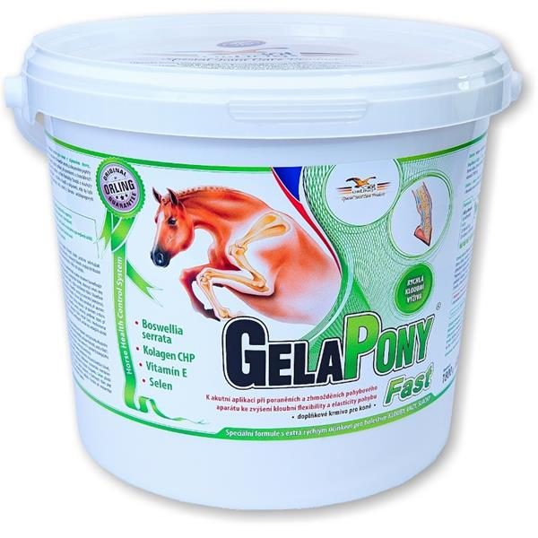 * Způsob použití: Podávat denně po dobu minimálně 10 dní. Dle aktuálního stavu je dále vhodné pokračovat s podáváním Gelapony® Arthro, Gelapony® Chondro či Chondropony®. Dlouhodobé podávání Gelapony® Fast je možné.