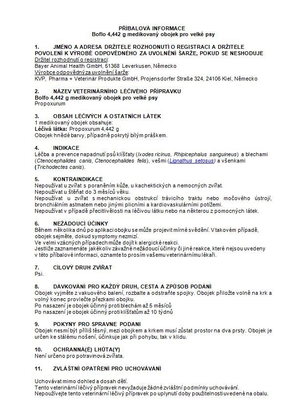 Obojek je akaracid a insekticid určený k vnějšímu použití. Zamezte kontaktu obojku s ústní dutinou zvířete. Po manipulaci s obojkem si důkladně umyjte ruce. Lidé se známou přecitlivělostí na propoxur by se měli vyhnout kontaktu s obojkem. Zvířata s obojkem by neměla přijít do kontaktu s batolaty a malými dětmi.
