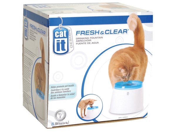 Nový typ fontány 2litry CatIt s jednodušším doléváním vody a jelikož nemá kopuli jako původní fontána, je i vhodnější pro dlouhosrsté kočky (kočky se nenamočí od stékající vody).