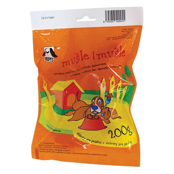 Mušle jsou ušní výkroje. Jejich nespornou předností je vysoký kolagenu a elastinu,obsah minerálních látek. Jsou tučnější než uši a proto pozor na podávání mušlí u pejskům s nadváhou. Co je nevýhodou v jednom případě, může být zároveň výhodou v případě druhém a tak by se daly mušle určitě využít u psů, kteří né a né přibrat.