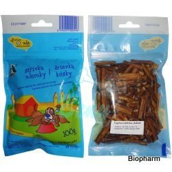 Zdravá pochoutka, příjemná cena, velké množství pamlsků v balíčku - pejskům moc chutná.