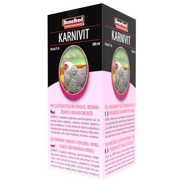 KARNIVIT u kohoutů podporuje spermatogenezi, protože zvyšuje kvalitu ejakulátu, zejména množství spermií a jejich pohyblivost. U slepic dochází k lepšímu oplodnění a následně pak i lepšímu vývoji plodů. Kuřata se díky KARNIVITu rodí s vyšší hmotností, imunitou a vitalitou, což se pozitivně projevuje na jejich zdravotním stavu a vývoji v dalším období jejich života.