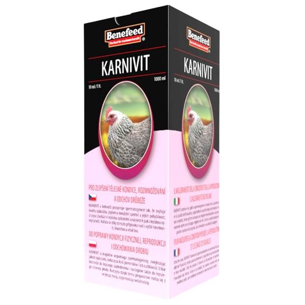 KARNIVIT u kohoutů podporuje spermatogenezi, protože zvyšuje kvalitu ejakulátu, zejména množství spermií a jejich pohyblivost. U slepic dochází k lepšímu oplodnění a následně pak i lepšímu vývoji plodů. Kuřata se díky KARNIVITu rodí s vyšší hmotností, imunitou a vitalitou, což se pozitivně projevuje na jejich zdravotním stavu a vývoji v dalším období jejich života.