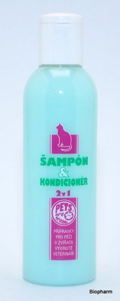 Šampón s kondicionérem 2v1 PETS ARE FRIENDS® neobsahuje parfémy ani jiné dráždivé látky a je uzpůsoben tak aby poskytoval maximální komfort mytí a byl šetrný ke zvířatům. Má tekutější konzistenci a sníženou pěnivost. Jemná vůně šampónu je dána přítomností přírodní čajové silice která má navíc pozitivní účinek na kůži. Šampón s kondicionérem 2v1, kromě kondicionéru obsahuje nejúčinnější látky pro udržení kvalitní a krásné srsti – norkový olej, jojobový olej a vitamín E.