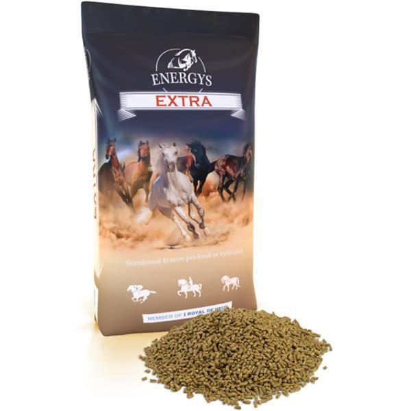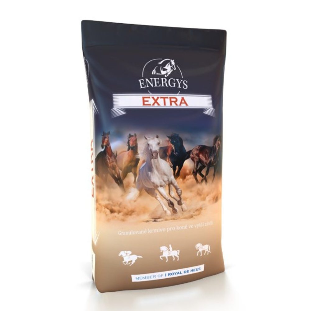 Složení: mačkané obiloviny, pšeničné otruby, melasa, sojový olej, jablečné výlisky, kvasnice, sušené pícniny, minerální látky, vitamíny, aminokyseliny Energetické krmivo s vysokým obsahem kukuřice vhodné pro koně v intenzivní sportovní a pracovní zátěži. Obsahuje vysoký podíl cukru a rostlinných olejů. Cukry slouží jako pohotový zdroj energie a zajišťují rychlou regeneraci vyčerpaného organismu. Tyto cukry jsou dodány melasou a jablečnými výlisky ve formě sacharózy a fruktózy. Obě komponenty zároveň zchutňují krmivo, a proto ho koně velmi ochotně přijímají. Sojový olej má velice příznivý poměr esenciálních mastných kyselin a představuje nejkoncentrovanější zdroj energie. Dalším významným zdrojem energie je v této směsi mačkaná kukuřice. Kvalitní bílkovinu zase dodávají kvasnice a optimální poměr aminokyselin zajišťuje přídavek lysinu a methioninu. Směs je nově obohacena o lecitin, který zlepšuje využití energie z tuků a vstřebávání živin včetně vitamínů. Krmivo obsahuje premix vitamínů a stopových prvků, část Zn a Se je dodáno v snadno využitelné organické formě.