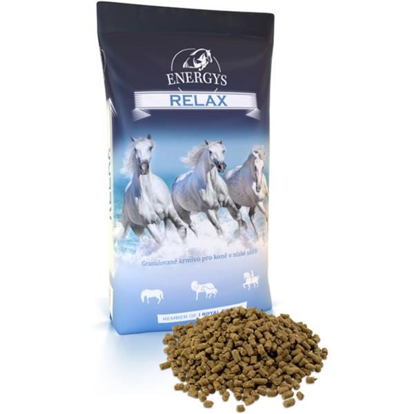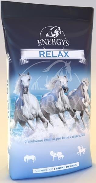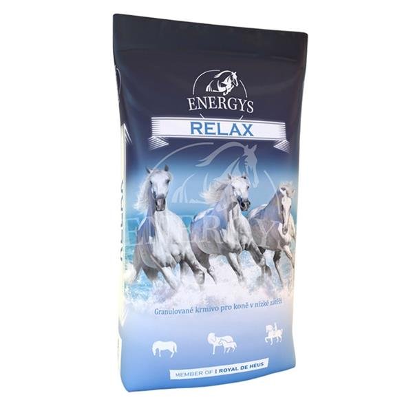 Směs obsahuje pouze menší množství melasy spíše na zchutnění krmné dávky a zpevnění granulí. V této směsi není melasa ještě zdrojem energie. ENERGYS RELAX se hodí pro plnokrevné koně (arabské nebo anglické plnokrevníky), po kterých požadujeme práci v klidnějším tempu nebo pouze hobby zátěž. V těchto případech můžeme krmení granulí doplnit ještě přidáním ječmene a vynecháním ovsa z krmné dávky . V této krmné dávce by se měl eliminovat neklid a nesoustředěnost koně na nejnižší možnou mez. Také odpovídá zátěži na turistických jízdárnách, kde kůň při vyjížďkách pracuje v pomalejším chodu delší čas.