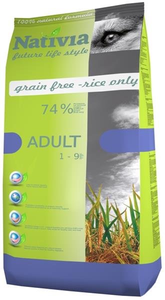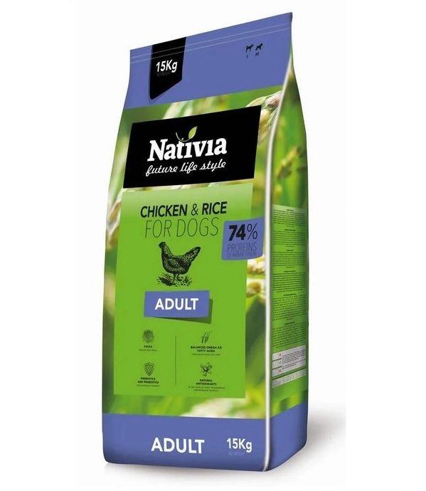 Nativia Adult v řadě Chicken&Rice obsahuje 74% bílkovin živočišného původu.