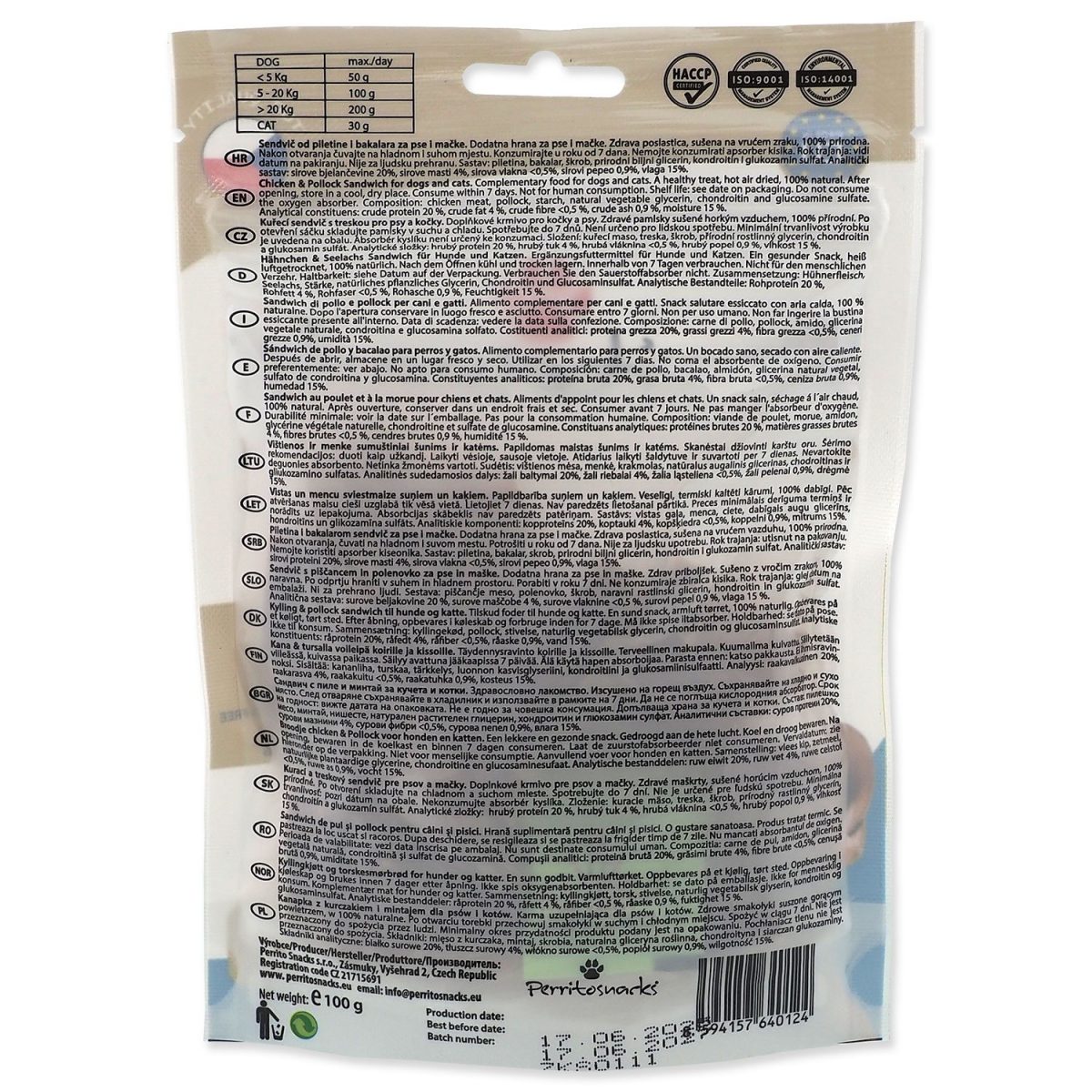 Měkké, čistě přírodní kuřecí sendviče s treskou vyrobené speciální metodou sušením masa pro ten nekrásnější zážitek z mlsání koček a malých psů.