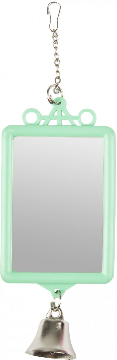 Závěsné zrcátko se zvonkem. Velikost: 6 x 8 cm.