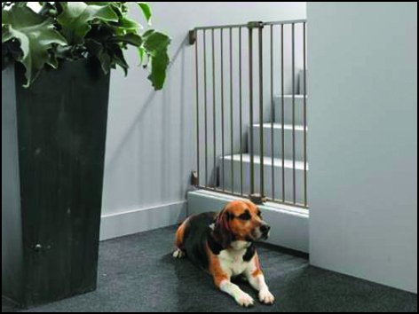 Pevná, nastavitelná zábrana pro použití uvnitř pro střední a velké psy.
