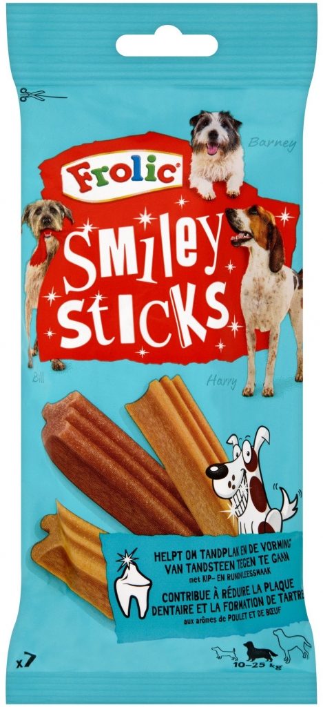 Velice oblíbená a chutná pochoutka, která pejskovi vyčistí zuby takřka jako kartáček! Lahodné tyčky s mnoha hranami, tuhou konzistencí a obsahem hrubé vlákniny donutí pejska tyčku dlouho žvýkat a kousat. Příchuť kuřecí a hovězí.