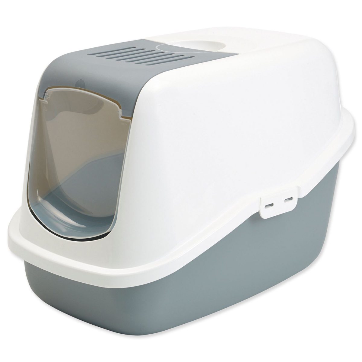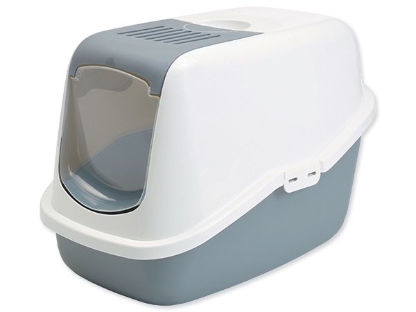 Toaleta pro kočky s plastovým krytem. Velikost: 56 x 39 x 38,5 cm.