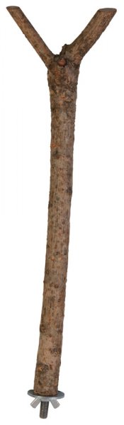 Přírodní dřevěné bidýlko s motýlkovou matkou pro snadné připevnění do klece.
