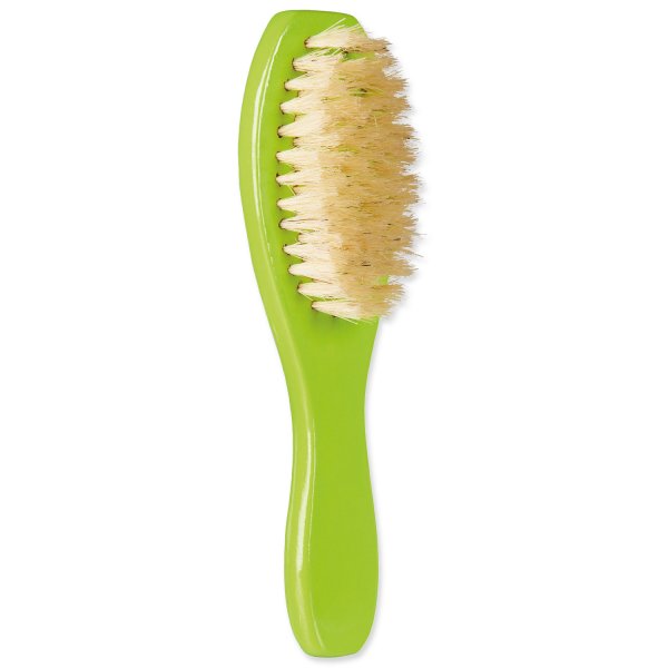 Dřevěný kartáč s přírodními štětinami.