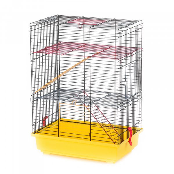 „Abyste předešli poškození klece okousáním, pro potkany, pískomily a osmáky, jejichž přirozeným naturelem je průzkumnictví a hledání únikových cest, doporučujeme klece s drátěnými prvky - ideálně klec Osmák, Osmák degu, které jsou navíc vybavena drátěným roštem bránícím rozkousání plastových dílů klece." Klec je dodávána bez vybavení, můžete tak dokoupit pouze to, co opravdu potřebujete.
