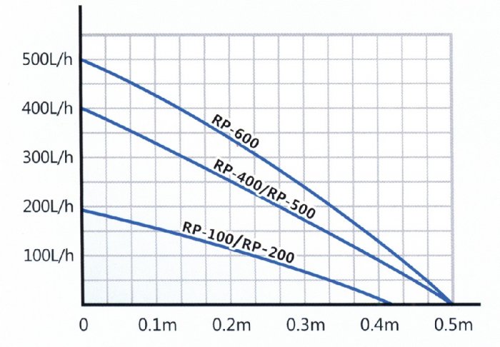 RP je vnitřní ponorný filtr s provzdušňovacím systémem a regulací průtoku vody.