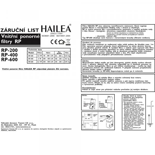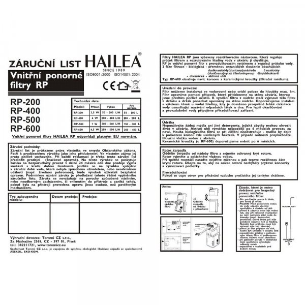 Výrobce akvarijní techniky Hailea zaměřil své R & D oddělení na vývoj nové hobby techniky. Výsledkem jsou nové vnitřní filtry řady RP s velkým objemem filtrační hmoty, regulací průtoku a rozstřikovací trubicí na výstupu.