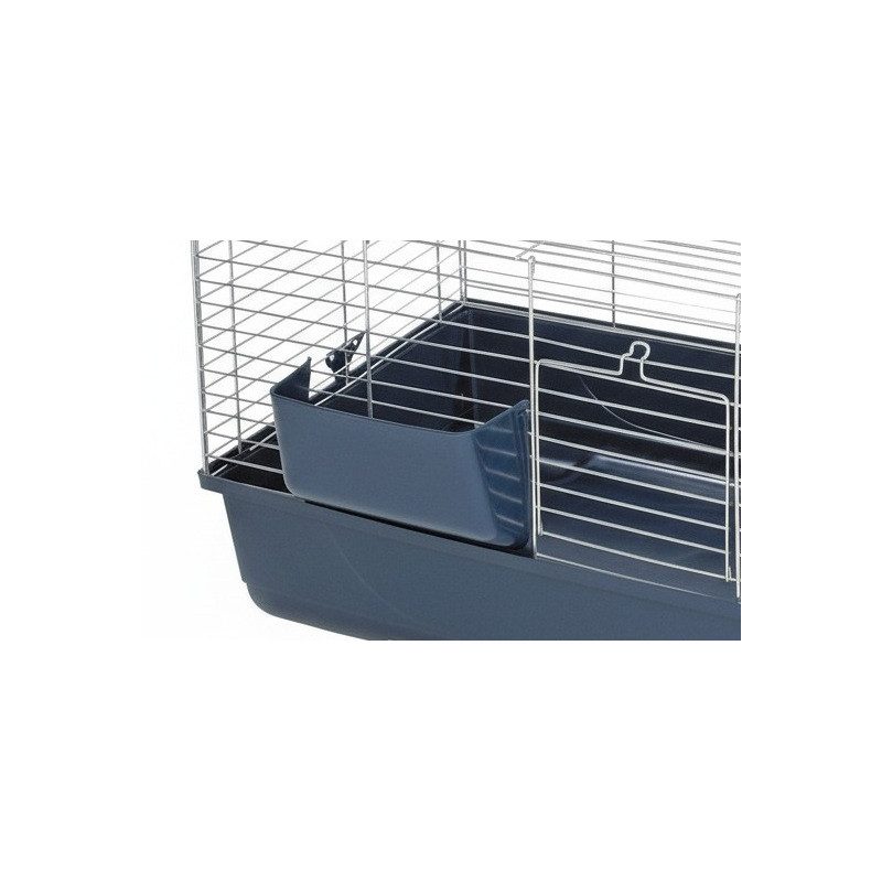 Součástí klece jsou plastové jestličky na seno.