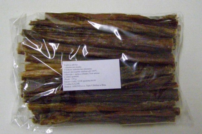 Vepřová střívka Chutný sušený pamlsek, který potěší Vašeho mazlíčka. Podávejte jako pamlsek či odměnu.