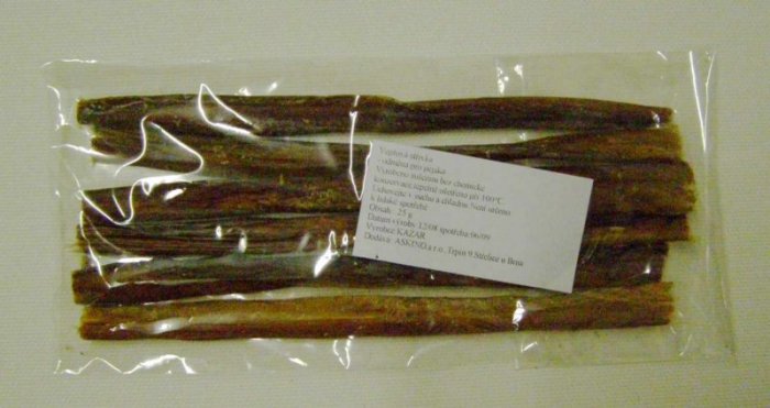 Sušené pamlsky - vepřová střívka. Doplňkové krmivo pro psy.