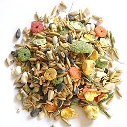 V praktickém uzavíratelném balení. Složení: extrudované obilniny Apetit, vojtěška, kukuřičné vločky, hrachové vločky, maize la plata, green been dark, carrot disk, sojové vločky, rice disk, svatojánský chléb, oves, pšenice, ječmen, granule - úsušky pícnin 8 mm, slunečnice žíhaná, slunečnice černá. Dostupné v balení: 6 x 800 g (sáček), 3 l - 1 200 g (kbelík) Balení: 3 l - 1 200 g (kbelík)
