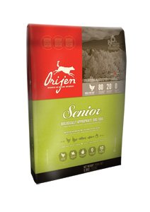 ORIJEN SENIOR- je první biologicky vhodné krmivo pro starší psy všech plemen, jediné krmivo, které neobsahuje vůbec žádné obiloviny ani další pro psy nevhodné přísady.