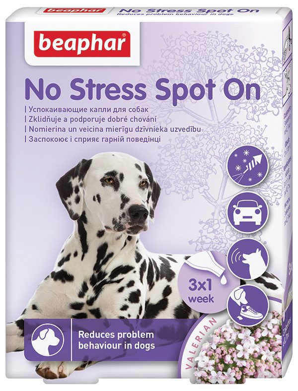 Beaphar No Stress Spot On je vhodný pro všechna plemena a věkové kategorie psů. Snižuje stres u psů a udržuje je v klidu díky zklidňujícímu účinku extraktu kozlíku lékařského, který je obsažen v mikrokapslích. Ty fungují na principu pomalého uvollňování a dlouhodobého účinku.