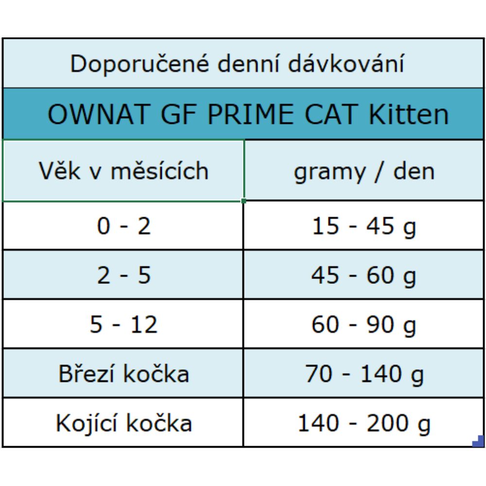 DOPLŇKOVÉ LÁTKY/kg: Výživové doplňky: Vitamin A 25.000 IU, vitamin D3 1.500 IU, vitamin E 450 IU, vitamin C 100 mg, taurin 2.200 mg, L-karnitin 200 mg, měď (síranu měďnatého pentahydrátu) 5 mg, měď (chelát mědi aminokyselin hydrát) 5 mg, mangan (oxidu manganatého) 52 mg, zinek (oxidu zinečnatého) 100 mg, železo (síranu železnatého monohydrátu) 40 mg, zinek (chelát zinku a aminokyselin, hydrát) 10 mg, jod (jodid draselný) 4 mg, selen (seleničitanu sodného) 0,3 mg.