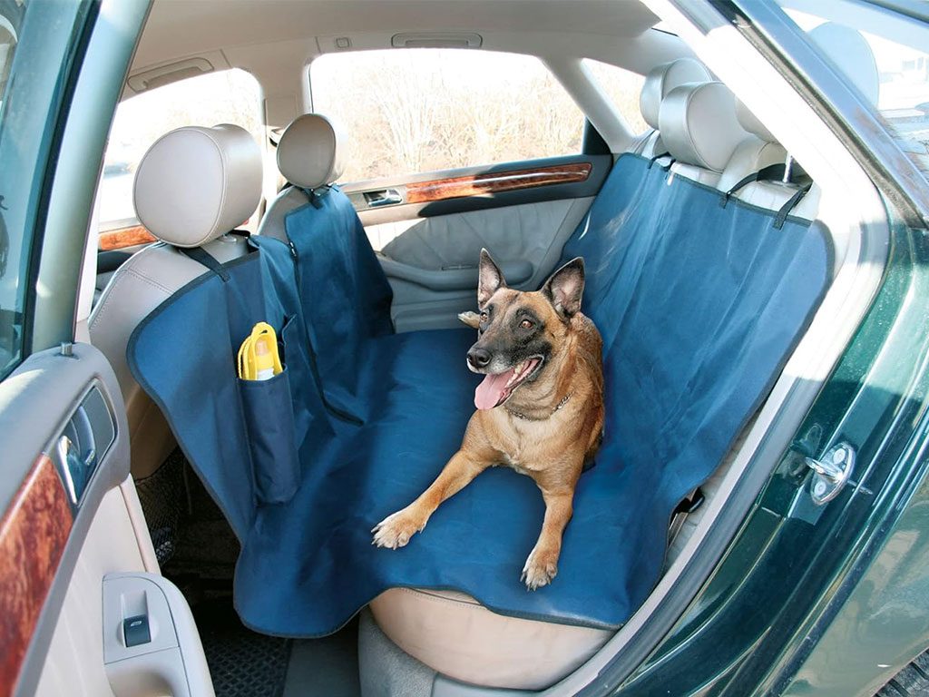 Zvláště odolný potah, který vyhovuje do všech typů aut, které mají opěrky hlavy přední i zadní. Chrání čalunění auta od nečistop a chlupů psa. Potah má dva otvory pro bezpečnostní pás. Součástí je cestovní láhev s miskou na vodu.