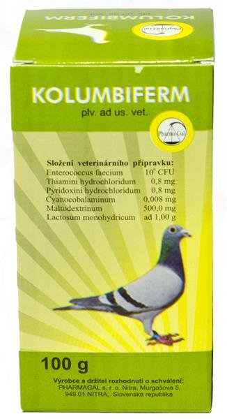 CHARAKTERISTIKA: Vodorozpustný prášok s obsahom živej probiotickej kultúry mikroorganizmu Enterococcus faecium a vitamínov skupiny B určený do denného a pitného režimu závodiacich holubov a ako aditívum krmného a pitného režimu mladých a chovných holubov na podporu rastu a množenie prirodzenej črevnej mikroflóry a inhibíciu rastu a množenia patogénnych mikroorganizmov.