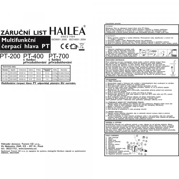 Hailea PT-700 cerpaci hlava