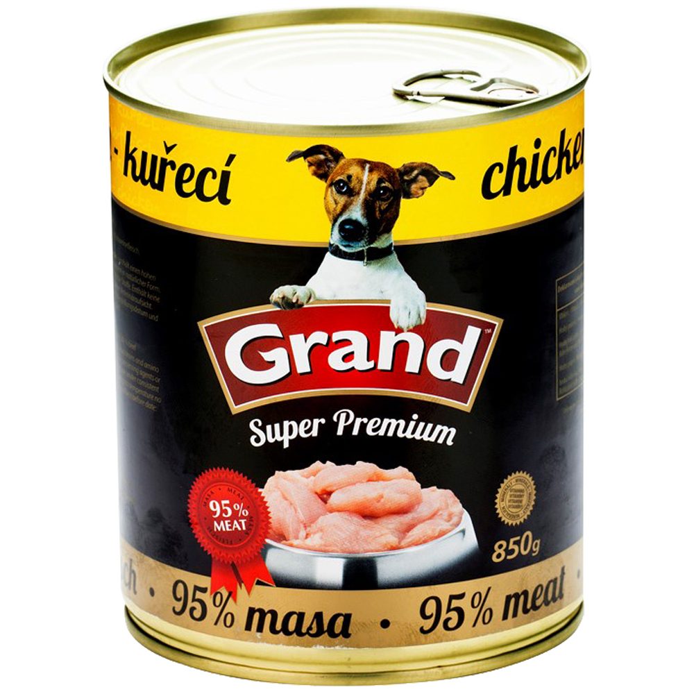 GRAND konz. Superpremium pes drůbeží je superprémiová konzerva nejvyšší kvality obsahující 95% masa. Vyvážený poměr masa zaručuje plnohodnotnou potravu pro psy všech plemen. Obsahuje podíl vitamínů a aminokyselin v přírodní formě. Neobsahuje žádné chemické ani konzervační přísady. Neobsahuje sóju.