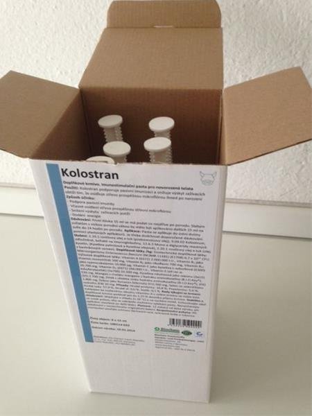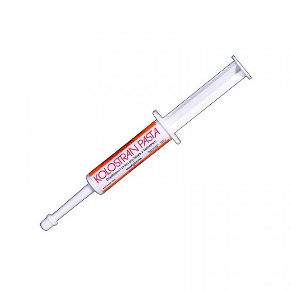 Použití: KOLOSTRAN PASTA je určena pro novorozená telata. Jejich odolnost závisí jen na protilátkách získaných z mateřského kolostra, a je často nedostačující (nižší kvalita kolostra, snížený nebo opožděný příjem kolostra, atd.). KOLOSTRAN PASTA zvyšuje odolnost telat k celkovým, respiračním a střevním infekcím. Probiotická složka brání rozvoji infekcí trávícího traktu a společně s vitamíny a minerálními látkami urychlují vývoj imunitního systému telat.