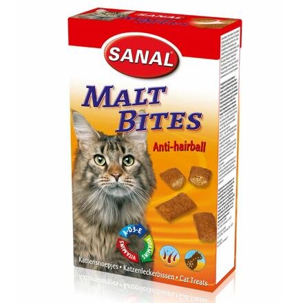 Pravidelné kartáčování a užívání Sanal sladových kousků napomáhá zmírnit tvorbu chomáčů ze srsti.