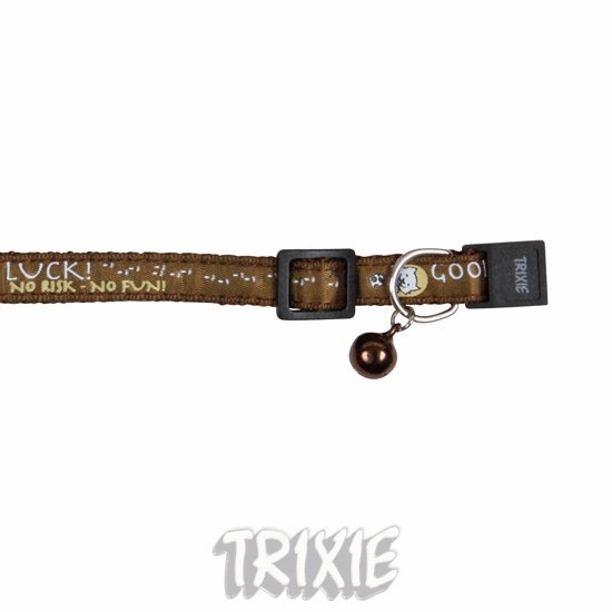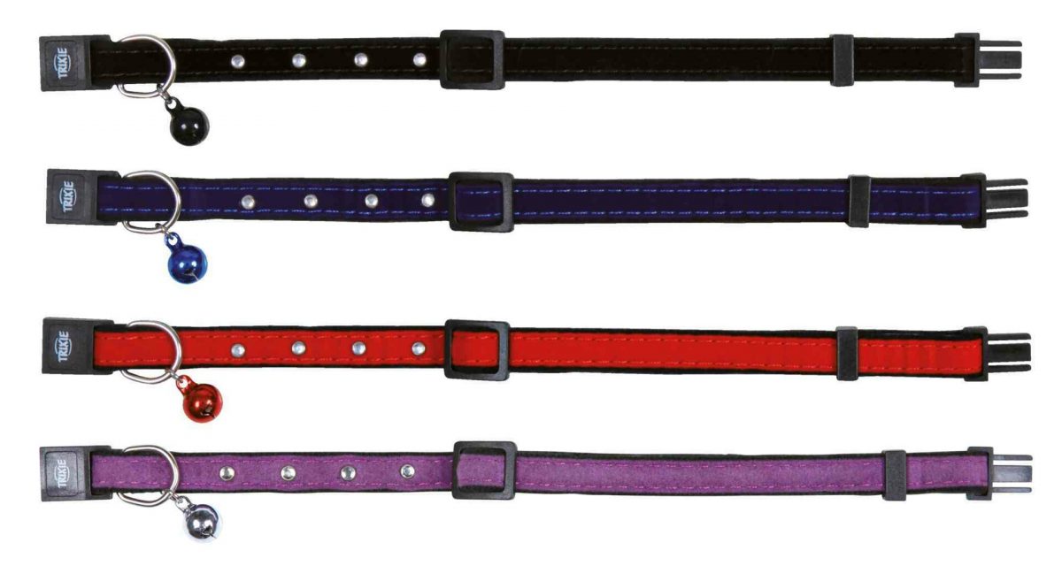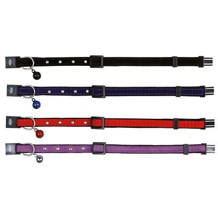 Velmi krásný a slušivý obojek pro kočky. Obojek je z pevného nylonu, pošitý, s plastovým zapínáním, kovovým očkem pro připnutí vodítka a rolničkou.