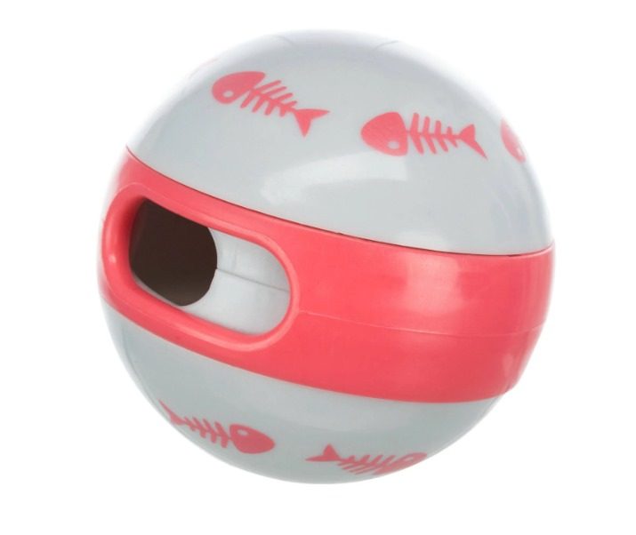 Plastový míček díky velikému otvoru snadno naplníte suchým krmením nebo pamlsky. Pak jej stačí rozkutálet po podlaze nebo zemi dokud z malého otvoru nevypadne pamlsek nebo granulka.