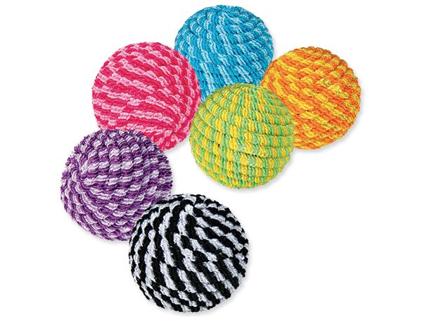 Kvalitní plastové míčky zabalené v nylonovém provázku. Uvnitř míčku je malá kulička, takže při jakémkoliv pohybu míček hrká. Ideální zábava pro vaši kočičku, která si s tímto míčkem bude hrát velice ráda.
