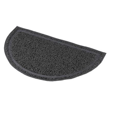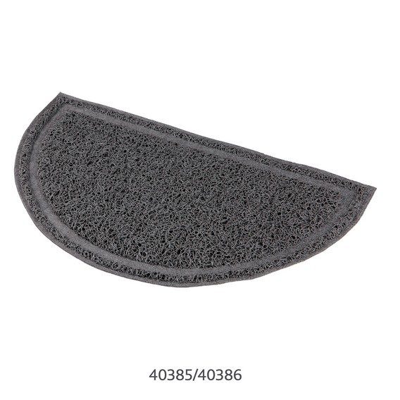 Půlkruhová předložka před kočičí WC z PVC, protiskluzová. Očistí tlapky kočky od podestýlky, okolí toalety tak zůstává čisté. Je doporučeno ji používat rovněž u citlivých koček.