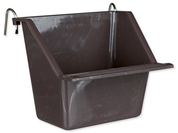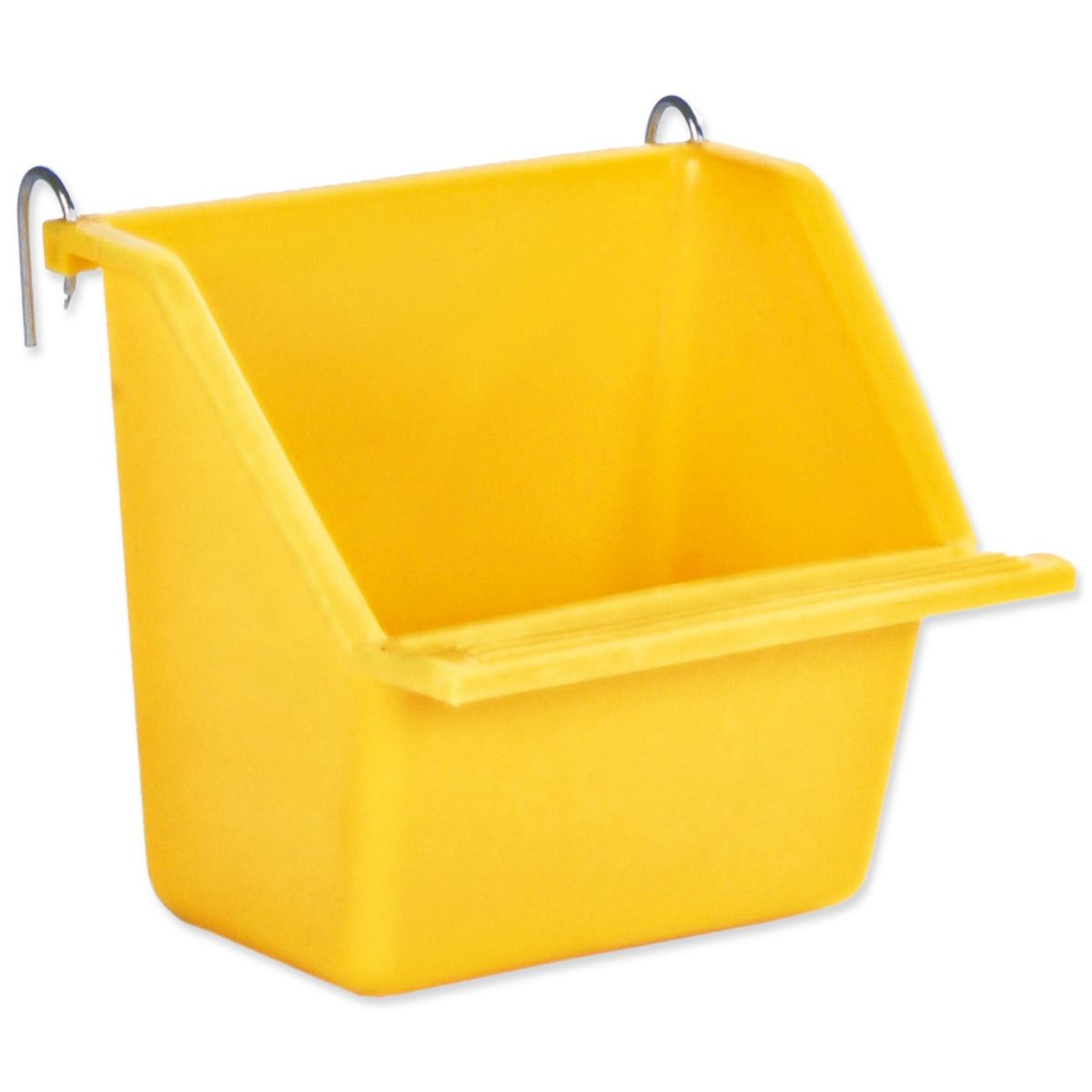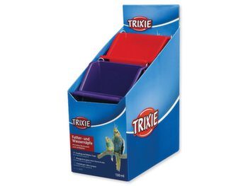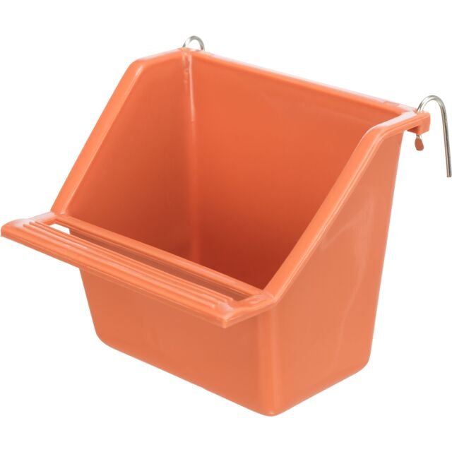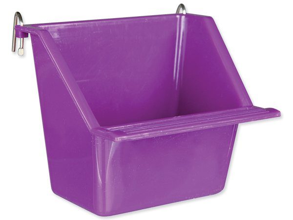 Pestrobarevné krmítko s širší stupačkou pro pohodlné krmení. Zadní stěna je extrémně vysoká, v zadní části krmítka jsou kovové háčky pro snadnou instalaci do klece.