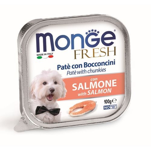 Kompletní velmi chutné krmivo. Delikátní paštika s kousky čerstvého lososa
