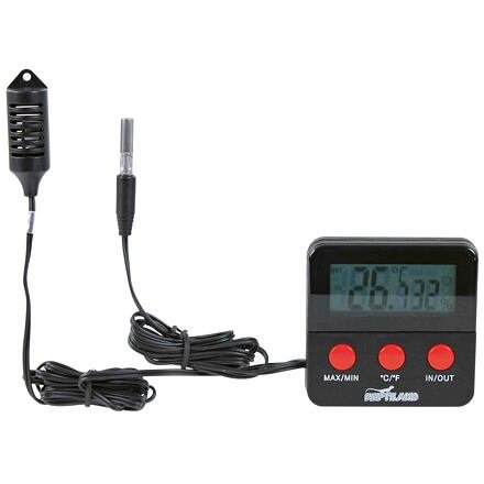 Digitální thermo/hydrometr s dálkovým čidlem pro snadné a přesné měření teploty a vlhkosti v teráriu.